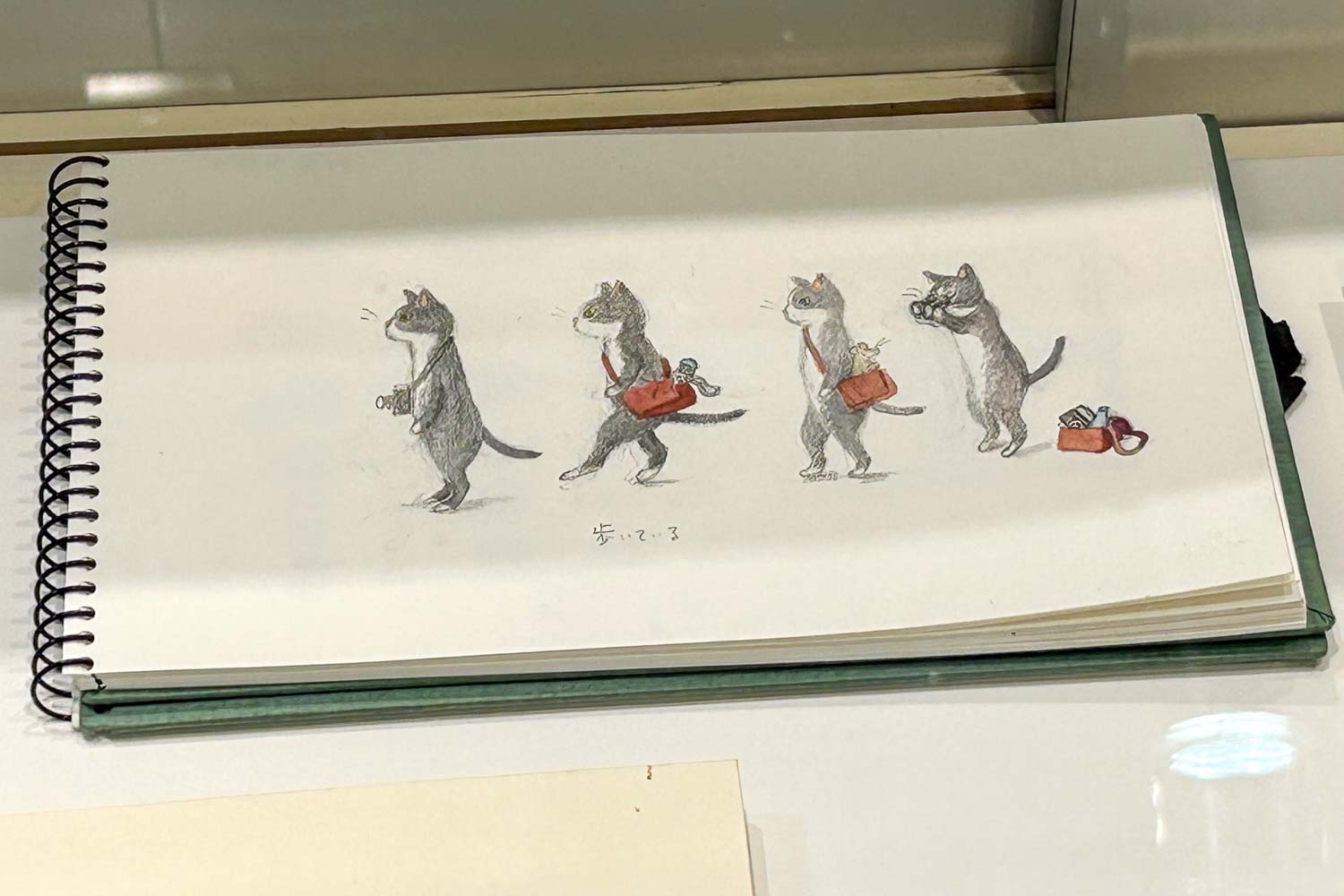今回、展示に合わせて5冊目ができ、その原画も出品されます。作品はやさしいタッチでどこか懐かしさを感じる絵と伊東さんらしい文章で綴られています。また、冊子にも出てくるネコたちが会場にも登場します。作品の間を皆様と一緒に散策するかのような配置も伊東さんらしいユーモアを感じられそうです。