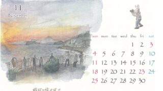 画家・伊東雅江さんの「鎌倉カレンダー」2018年11月より。秋の夕暮れ時に江ノ電に乗っていると、稲村ヶ崎駅で若いカップルが下車するので不思議に思っていました。稲村ヶ崎駅から徒歩5分ほど、七里ガ浜と由比ガ浜の間を仕切るように張り出す岬にあるの...